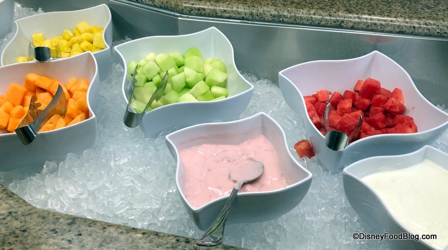 There’s Fresh Fruit to accompany your breakfast, including pineapple, cantaloupe, honeydew, and watermelon. Strawberry Yogurt and Greek Yogurt are available, too.