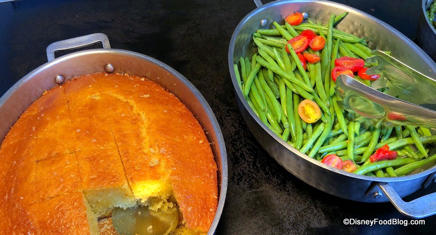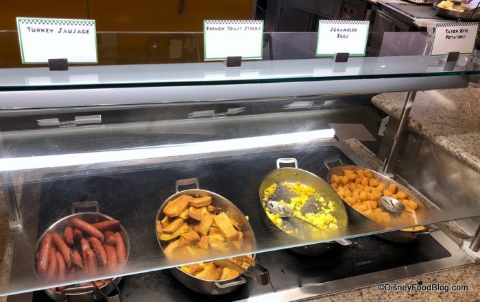 Since I dined here for brunch, I had a wide selection of items from which to choose. At many Disney buffets, you’ll find the same items on both sides of the buffet, so it doesn’t matter which side to head to. But here, during brunch, you’ll find breakfast items on one side of the buffet, and lunch items on the other.