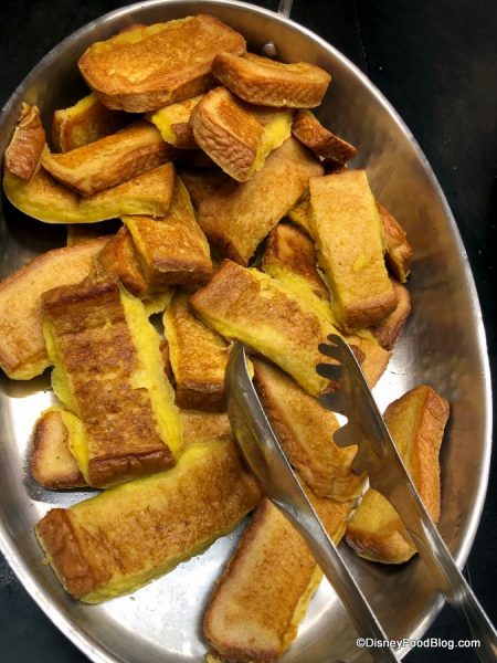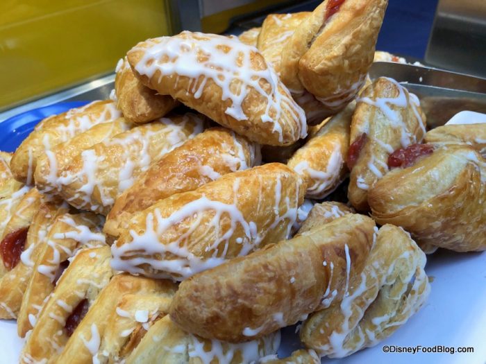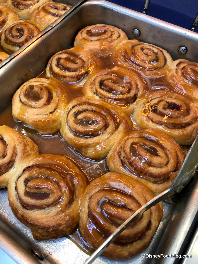 Cinnamon Rolls at Chef Mickey’s aren’t glazed as per usual; they’re doused in caramel sauce. We don’t hate this approach. 😉 Back in the day, these used to be called “sticky mickeys!”