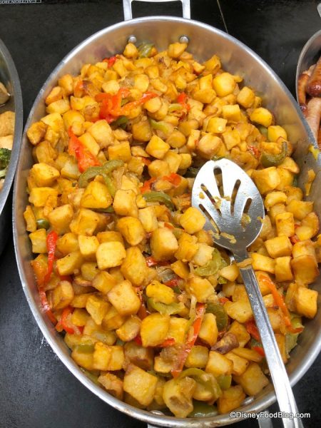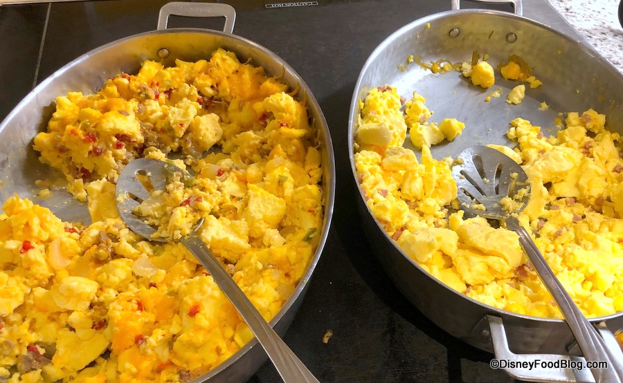 Cheesy Potatoes and an Egg White Scramble provide some balance between heavy and light. We recommend some of each! 😉 The Cheesy Potatoes are a classic Chef Mickey’s choice.