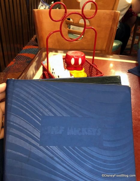 The drink menu features some typical cocktails (think Magical Star Cocktail, Blue “Glow”-tini, Bahama Mama) and sangria. Nothing to write home about, but if you’re on the Disney Dining Plan, an alcoholic beverage is included for diners over 21. (There’s a Sparkling No-jito, too.)
