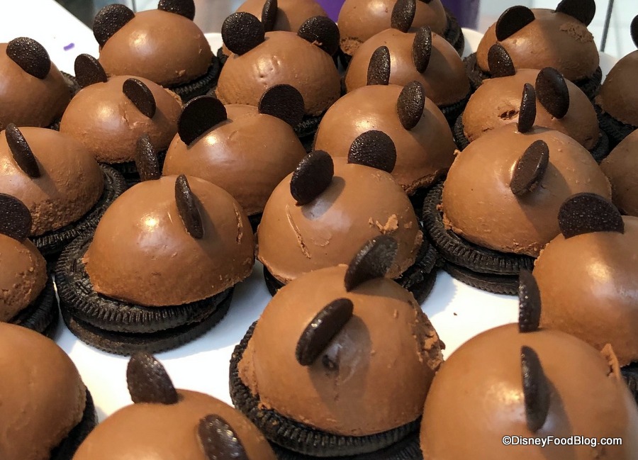 Mickey Domes are a combo of Oreo and chocolate mousse. These aren’t done amazingly well; you can see the domes are essentially separate from the Oreos entirely. But the flavor and textures are fine.