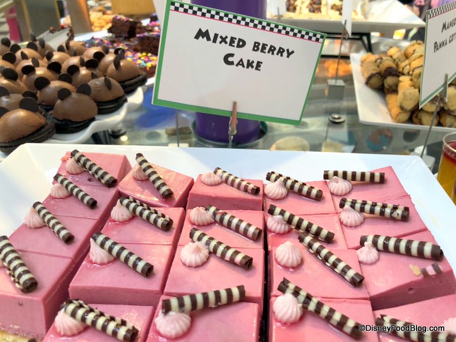 Mixed Berry Cake is a thin layer of fruity sponge cake and a thick berry mousse on top. This was sort of similar in texture to the panna cotta, so not our favorite.