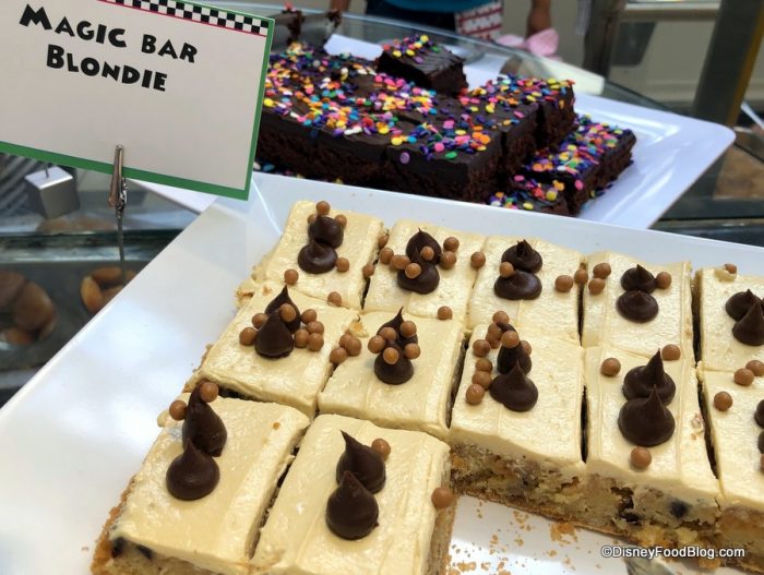 The Magic Bar Blondies combine all the great flavors of magic bars (think coconut, butterscotch, and chocolate chips) in a blonde preparation that tops off the bar with a butterscotch-y frosting and a couple dollops of thick chocolate ganache. These were SO SO good.