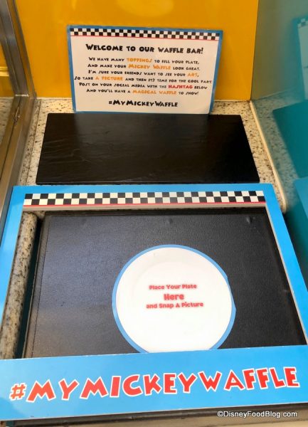 And here’s why: a #MyMickeyWaffle photo opp, complete with a frame and a hashtag so not only can you share your waffle with the world, you can also see what the world has done to its waffles. It’s social media…for Mickey Waffles. Yes, the end of civilization is nigh (but in the meantime at least we’ve got waffles).