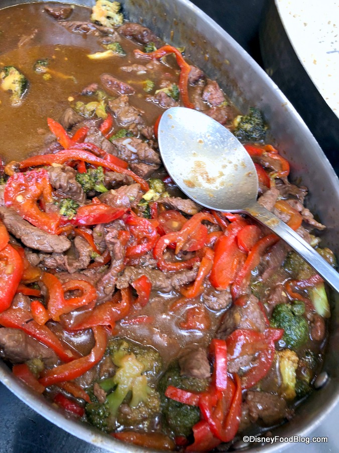 Chef Mickey’s also serving up Mongolian Beef. We spotted this on the 1900 Park Fare buffet recently (see the review here!), too, so it’s not super-creative, but it is popular.