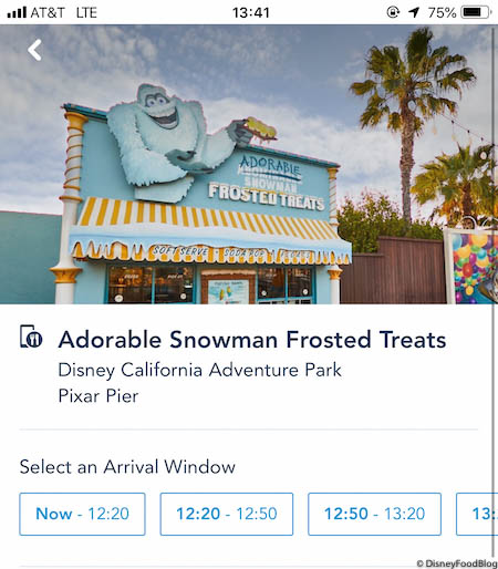 But that’s not the only location that has been added to the ever-growing list of Mobile Order restaurants. Adorable Snowman Frosted Treats, which serves soft-serve ice cream in Disney California Adventure, has also been added.