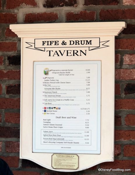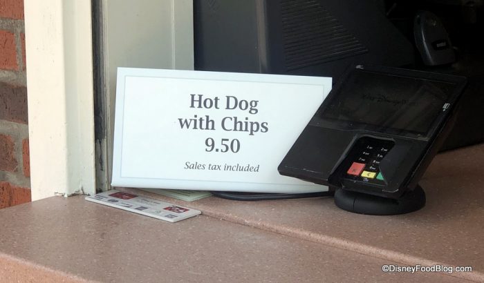 In the American Adventure Pavilion, we noticed that Fife & Drum Tavern is now offering a Hot Dog with Chips meal for $9.50.