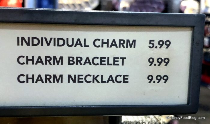 Each charm is $5.99, and you purchase a bracelet or necklace for $9.99.
