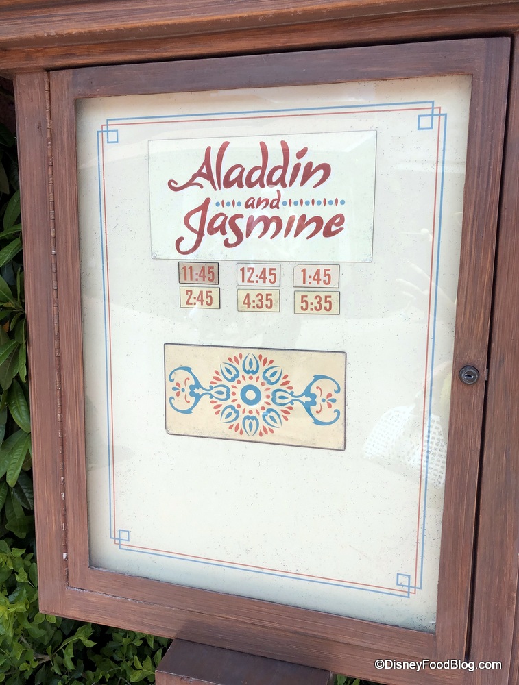 In the Morocco Pavilion, we noticed that Aladdin is now meeting with Jasmine. According to a Cast Member, Aladdin joined her a little while ago, and they’re not sure how long he’ll stick around in the area.