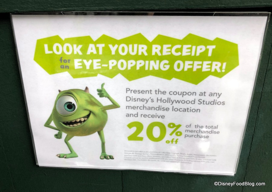 This isn’t an every day offer, however we have seen it pop up in slower attendance times, or during “odd” meal periods, like before and in between peak mealtimes for most folks. The coupons do have some stipulations, but 20% off merchandise? We’ll take it! ALWAYS check your receipt!
