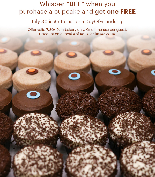 All you have to do is whisper “BFF” when you purchase a delicious cupcake, and you’ll receive another for FREE! Are you and your bestie going to pick matching flavors or mix it up?