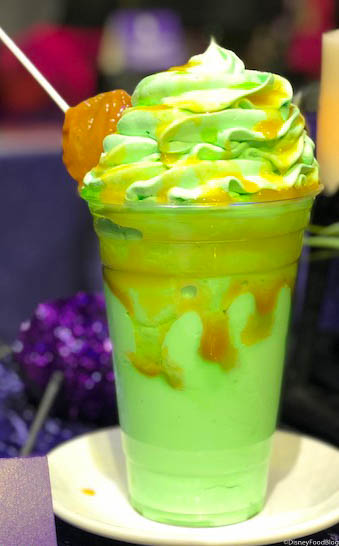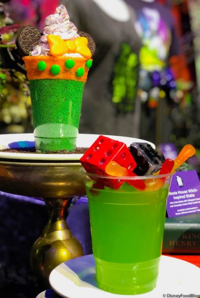 Test your luck in the Hollywood Lounge with the Oogie Boogie-inspired drink complete with dice glow cubes. And you’ll also be able to sip on the Minnie Mouse Witch Shake. This is a mint chip shake with whipped cream and chocolate cream-filled cookie ears! It will be available at Schmoozies.
