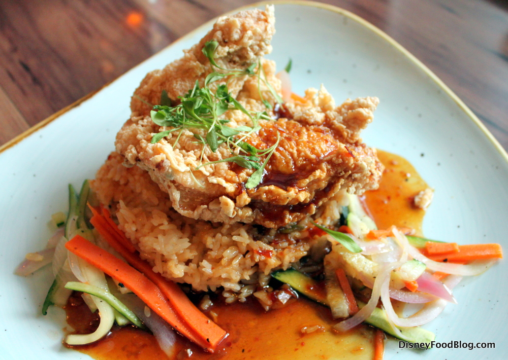 If you don’t dine on swine, “Tastes Like Chicken” Because It Is features a pile of chicken and vegetables served over a bed of fried rice with a mouth-watering hoisin sauce.