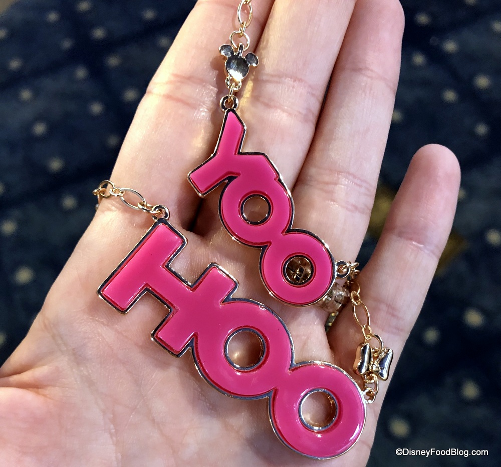 Also in Mouse Gear, we found Yoo Hoo necklaces and earrings for $14.99 each. We love the vibrant pink color!