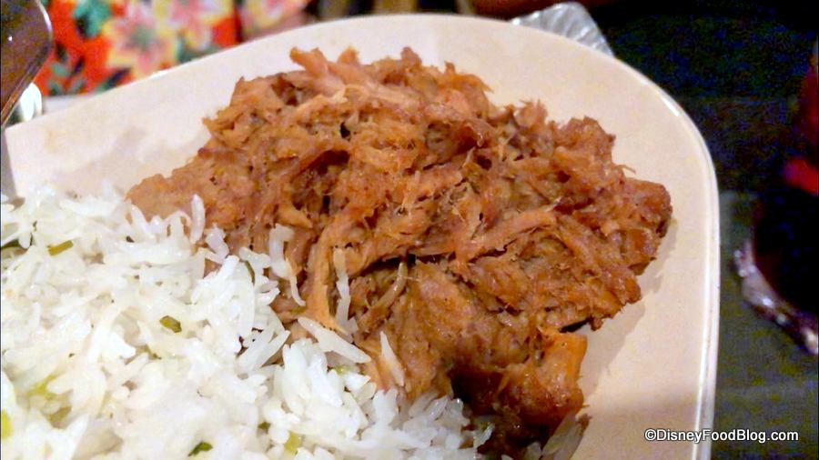 The Aloha Pulled Pork is flavored with Chipotle Barbecue Sauce. This was tender and flavorful meat that’s presented simply — no sauce on top or served on the side. So you’re getting the Chipotle Barbecue Sauce in the meat itself from the cooking process. The pork was meaty with very little fat. It was probably our favorite protein on the platter.