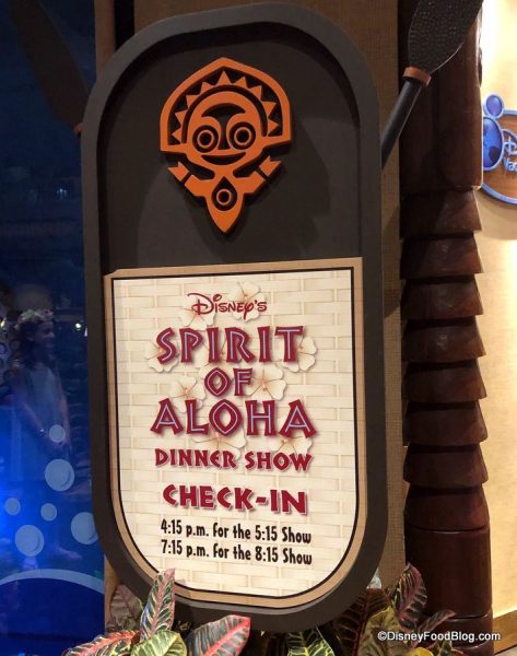 Disney’s Spirit of Aloha offers two showtimes: 5:15PM and 8:15PM. You can check in starting up to one hour before the show begins, and we recommend getting there early so you have time to explore the Resort and make the walk to Luau Cove.
