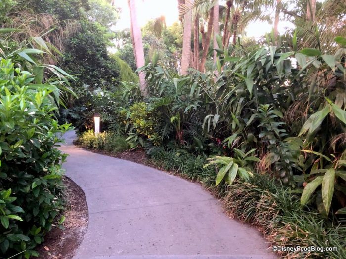 As you begin your somewhat lengthy walk to Luau Cove, don’t forget to take in your surroundings. The Polynesian is beautiful at every turn (and check out that dusky sky!).