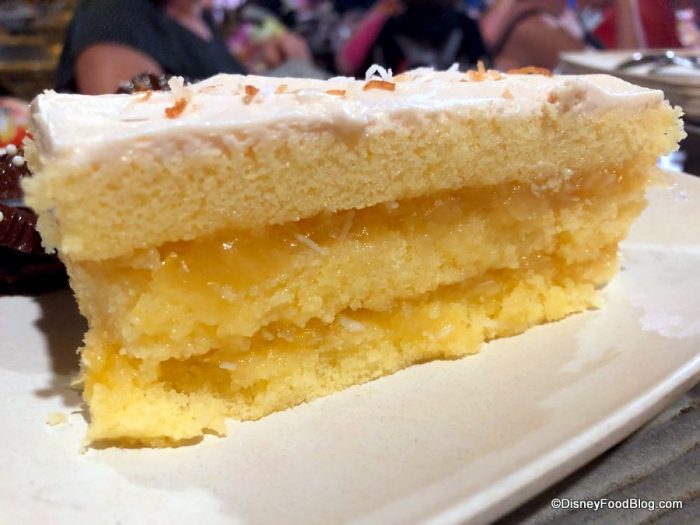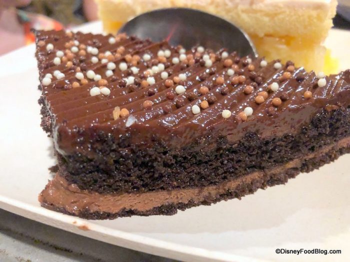 The Mocha Chocolate Cake isn’t too heavy on the mocha, but if you’re averse, you can request not to get this. It’s topped with the mini chocolate balls we’re starting to see used on desserts around Walt Disney World. The cake itself was moist and sweet, and the frosting was delicious.