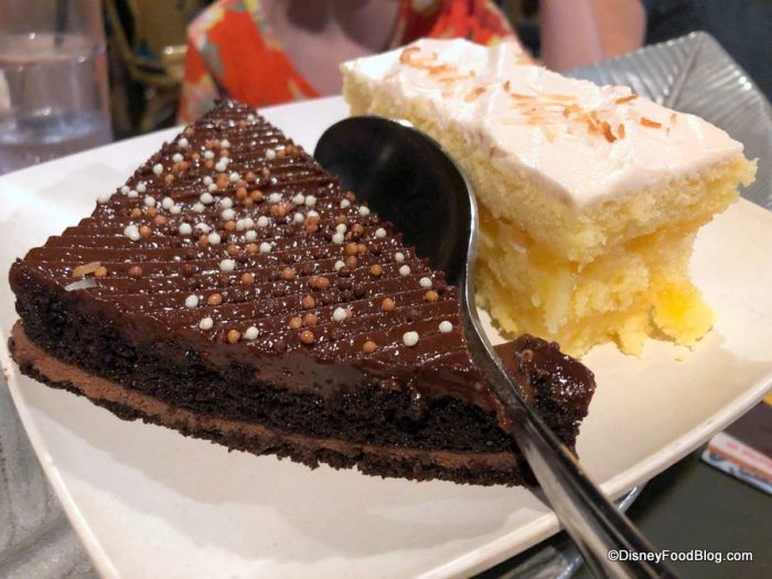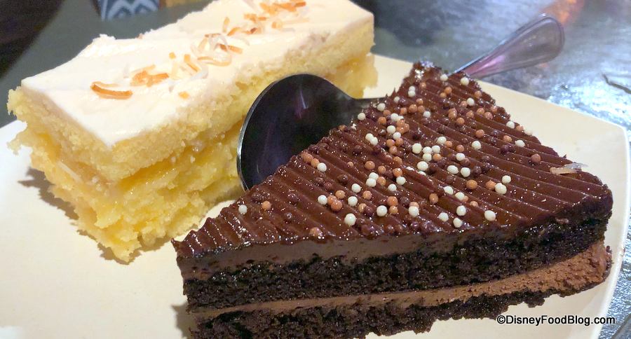Dessert included two large portions of two different cakes: Mocha Chocolate and Toasted Coconut Pineapple.