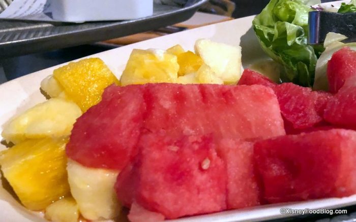 The Appetizer platter included some lovely fresh, tropical fruit. We had watermelon and pineapple, and as the meal progressed, we requested seconds of this. The additional fruit was brought in a small bowl, but if we had requested seconds of everything on the platter, they would bring out a second full platter. The same method is used for the Main Courses, too, so hopefully this cuts down on food waste.
