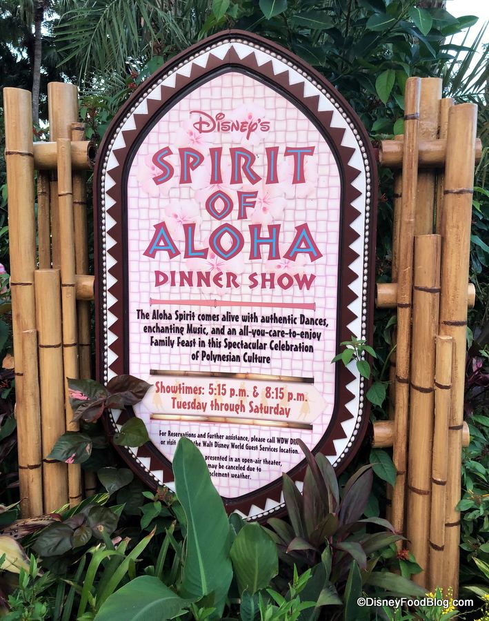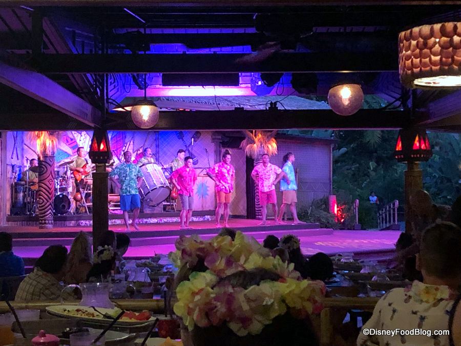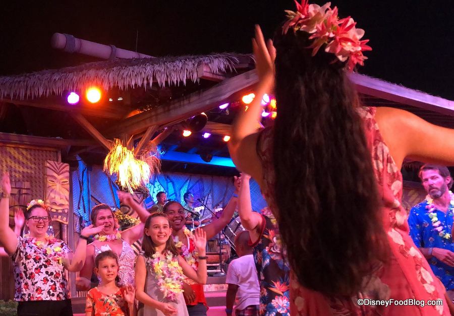 The Disney official backstory of Spirit of Aloha is that the host of the luau, Auntie Wini, is bidding aloha to one of her ‘ohana who’s heading “to the mainland” for college. And because when you’re at the Polynesian, everyone is ‘ohana, you’re invited to the celebration, too!