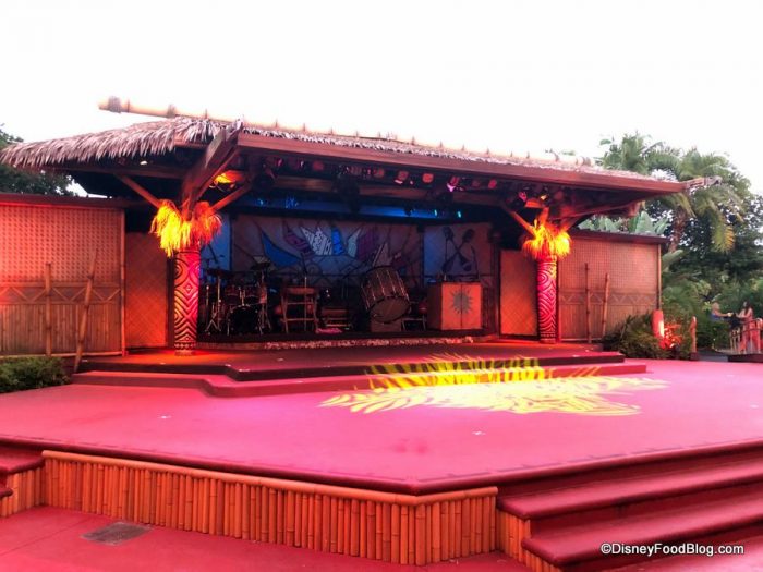 The stage is also set with percussion instruments and plenty of space for breaking it down Polynesian style. (There will be hula, in case you were wondering.)