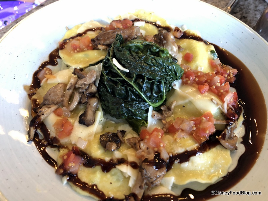 Though these dishes were mostly simple and straightforward (the Ravioli is by far the most creative of the entrees we ordered), we enjoyed each one. They are satisfying and well-seasoned across the board, but the loss of those onions is unfortunate…and even if an oversight is a rare one, it’s still an oversight when you’re on an expensive trip to Disney World.