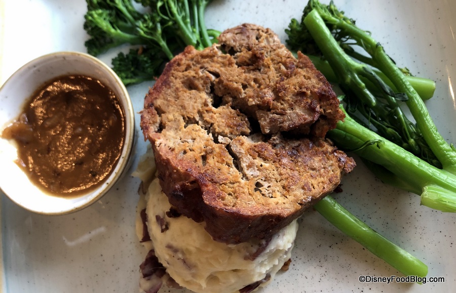 The Cafe Meatloaf comes with a side of smashed red bliss potatoes, which are standard and nothing special. But we really enjoyed the buttery broccolini that comes with this dish. Overall, this is a simple and hearty offering that works for picky eaters (gravy on the side, perhaps?) and kiddos with big appetites!