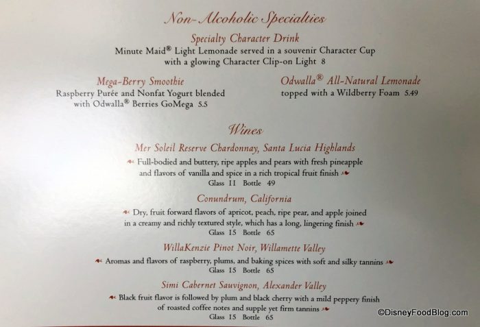 Grand Floridian Cafe also features options from the Disney Family of Wines and non-Disney wines (see above).