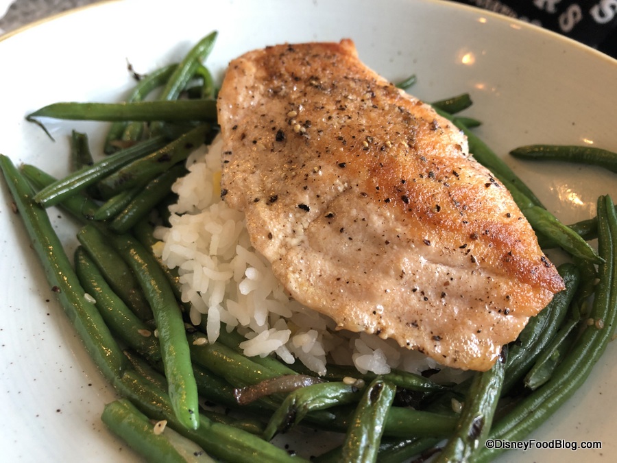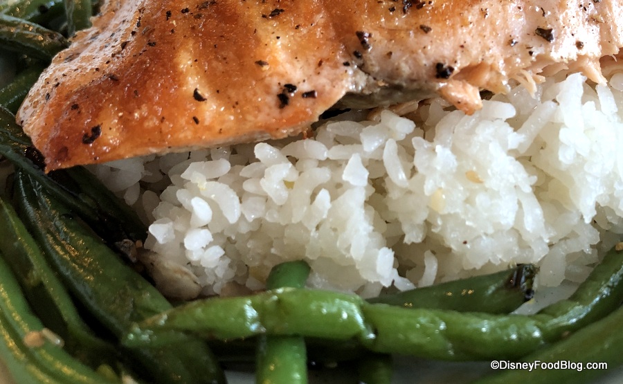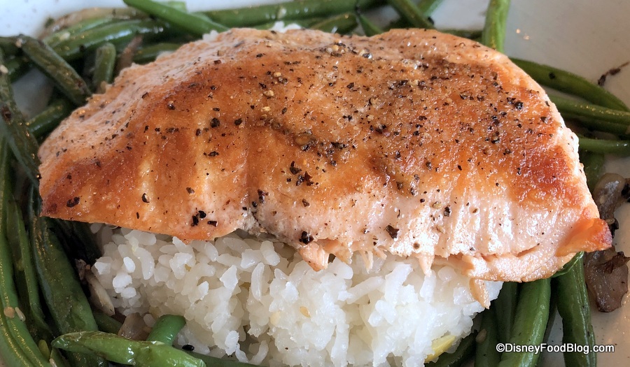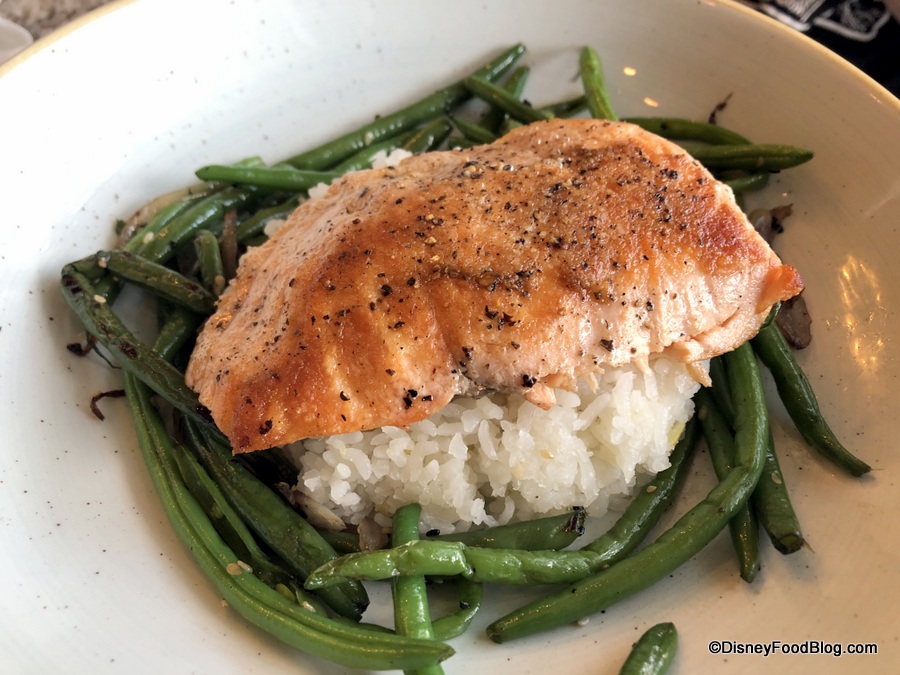 Another child in our dining party opted for the Miso-Glazed Salmon… without the miso glaze. 😉 The glaze is typically thick and flavorful, so while we appreciate a simple plate of food (salmon, rice, green beans), the adults at the table would’ve preferred that salty/sweet glaze!