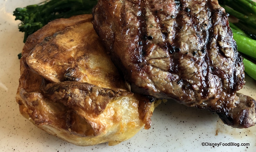 Sides are simple on this dish, too. We enjoyed another serving of the buttery broccolini, and the potato gratin was terrific.