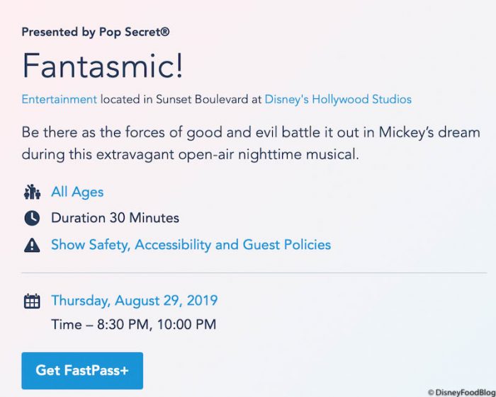 Fantasmic! is a nighttime show filled with characters and fireworks at Disney’s Hollywood Studios. Typically, there is only one Fantasmic! show each night. But, from August 29th – September 2nd, guests will be able to watch Fantasmic! at 8:30 PM and at 10 PM.