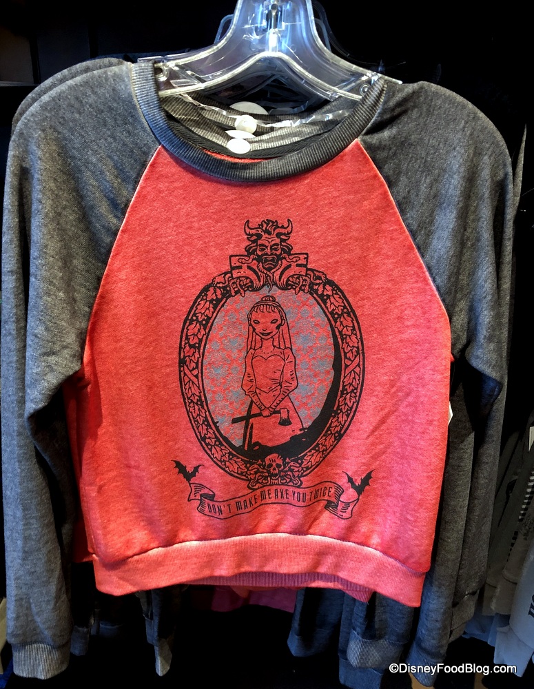 Constance Hatchaway is front and center on this “Don’t Make Me Axe You Twice” sweatshirt ($49.99). You’ll just have to steer clear of her ax!