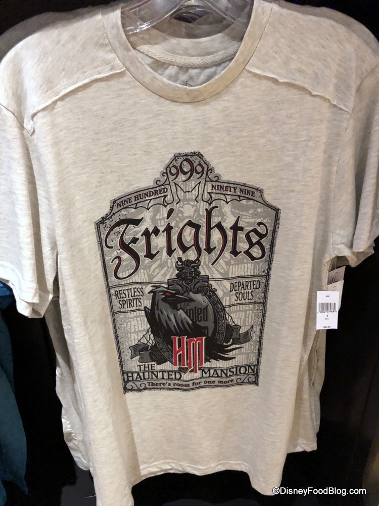 This Frights shirt ($34.99) we spotted won’t let you forget that 999 happy haunts dwell in The Haunted Mansion!
