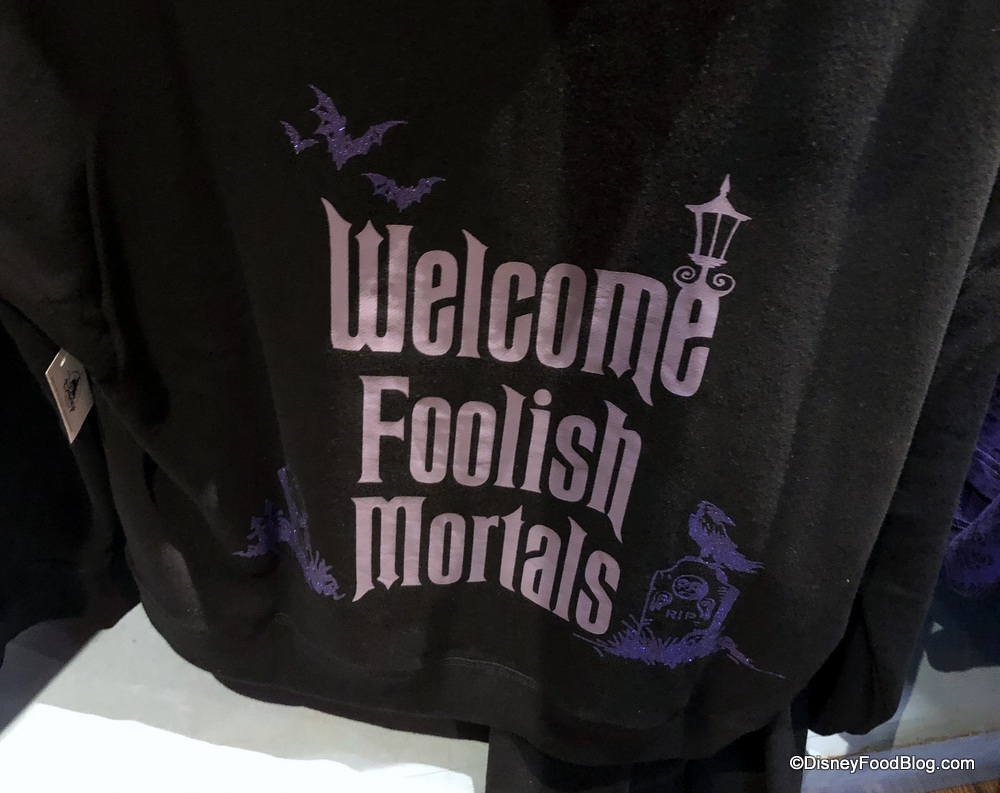 If you’re in the market for a new hoodie, we spotted this black jacket ($54.99) with the Haunted Mansion logo!