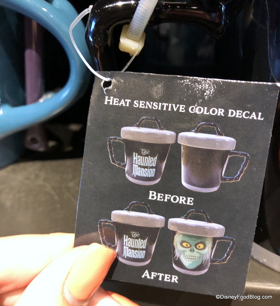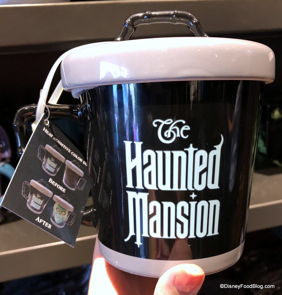 We also spotted a heat-sensitive Haunted Mansion mug ($24.99)! When you pour hot liquid into the mug, you’ll be greeted with the face of Hatbox Ghost himself!
