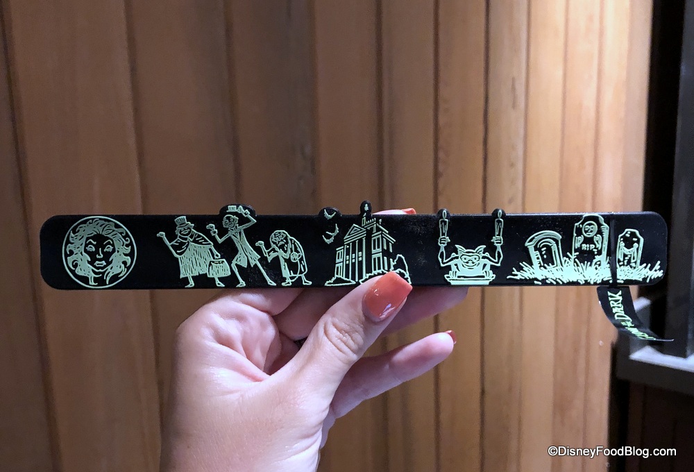 Lastly, we found a slap bracelet, which had just been brought out when we were in Memento Mori. The Cast Member we spoke with was pretty sure this bracelet costs $9.99 but they hadn’t rung any up yet at the time.