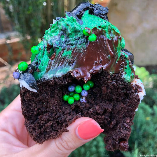 The cupcake itself was very dense and moist. There is a LOT of buttercream frosting stacked on top, and since it’s green and purple, you can expect it to stain your teeth and hands!