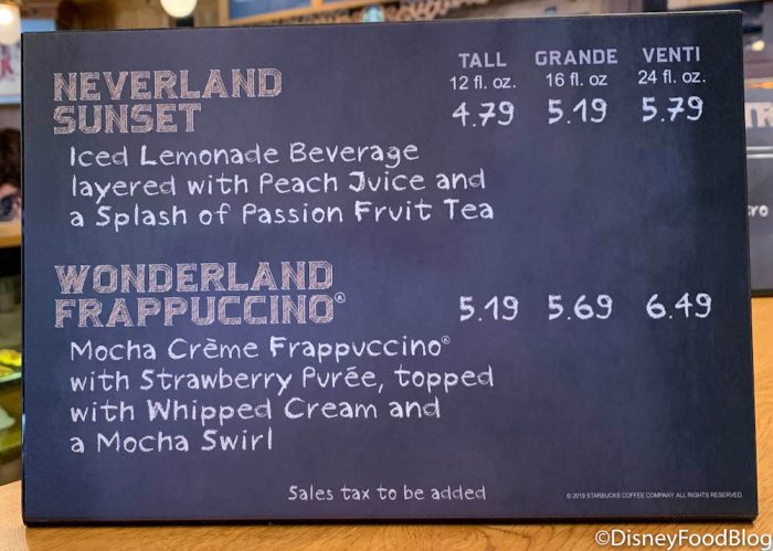 The Wonderland Frappuccino and the Neverland Sunset have made their exciting, exclusive debut at the Disneyland Starbucks! The original flavors were crafted in-store by Cast Members, who took the Alice in Wonderland and Peter Pan stories to heart to create the drinks.