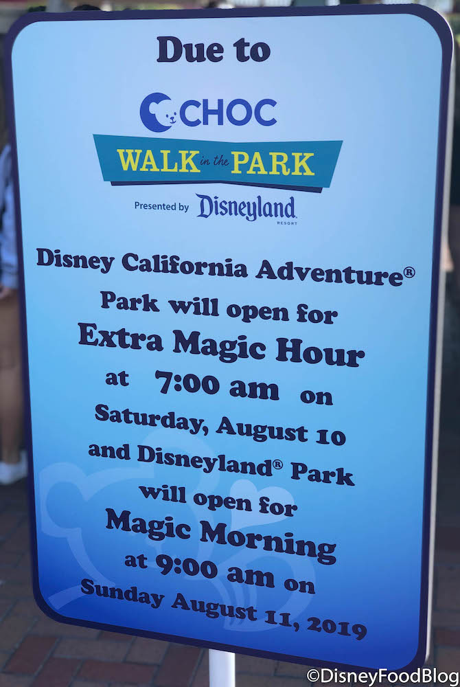 … and we also noticed that Extra Magic Hours had been tweaked for the CHOC Walk in the Park occurring on August 11th.