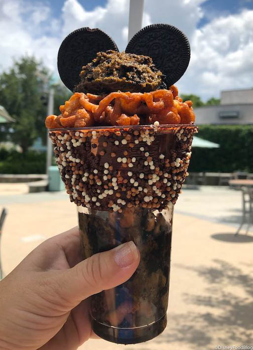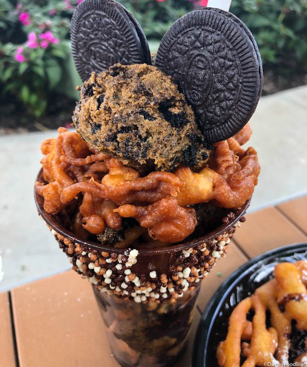 We thought the Mickey Funnel Cake was super cute and great for sharing with a friend! The Chocolate-Chip Cookie Dough was extremely sweet but not grainy at all (none of them were grainy, in fact). If you love funnel cakes, you will most likely enjoy this treat!