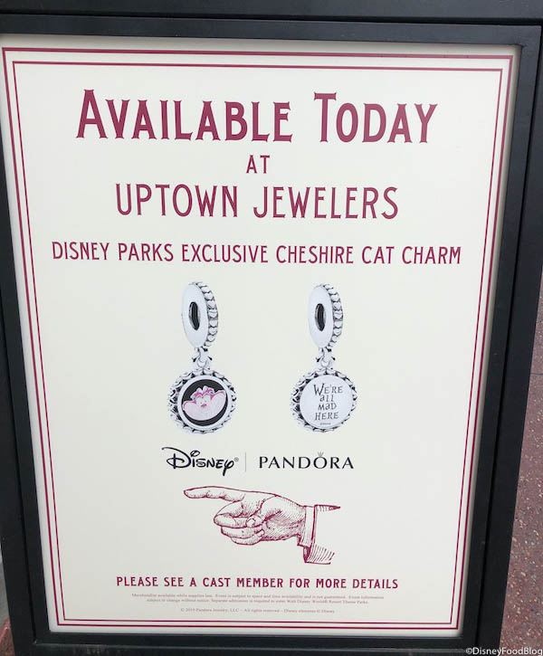 And one of the best places to find these is Uptown Jewelers in Magic Kingdom. This is because they’re always releasing new charm options like the Haunted Mansion set and the Cheshire Cat Charm we saw on our visit today!