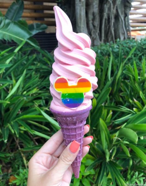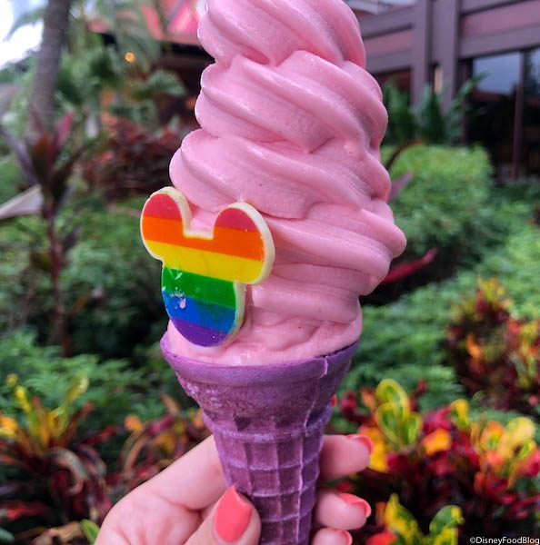 We’ve already checked out the Razzle Dazzle Sundae from Disney Springs, the Rainbow Pride Cupcake from Port Orleans, and the Pride Cupcake from Hollywood Studios. But now, it’s time to talk about a Strawberry Dole Whip Cone!