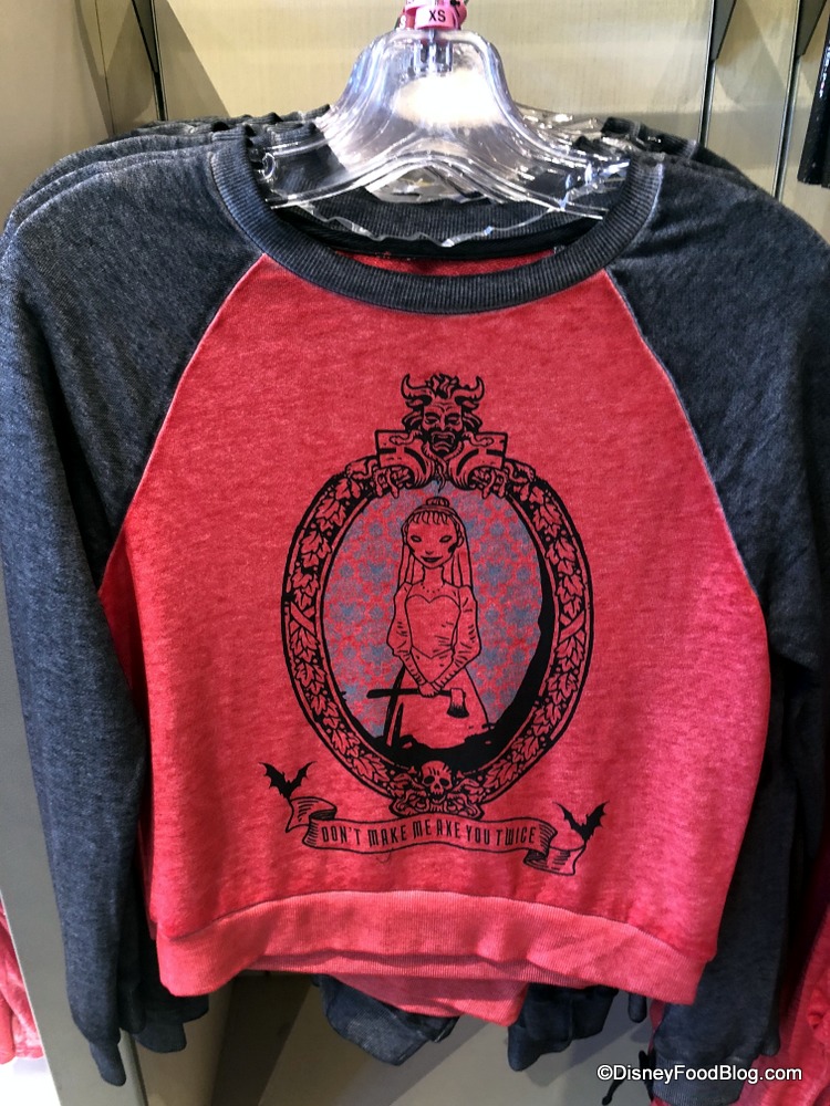 If you want to be super cozy while also repping The Haunted Mansion, you might like the matching Constance Hatchaway sweatshirt and sweatpants we found. We recently spotted these in Memento Mori in Disney World, and you can learn more about them here!