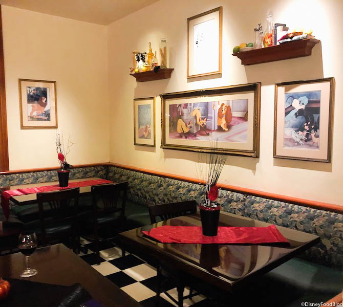 The exterior of Tony’s is decorated with a few pieces of fall decor as is the case with most Main Street USA edifices.