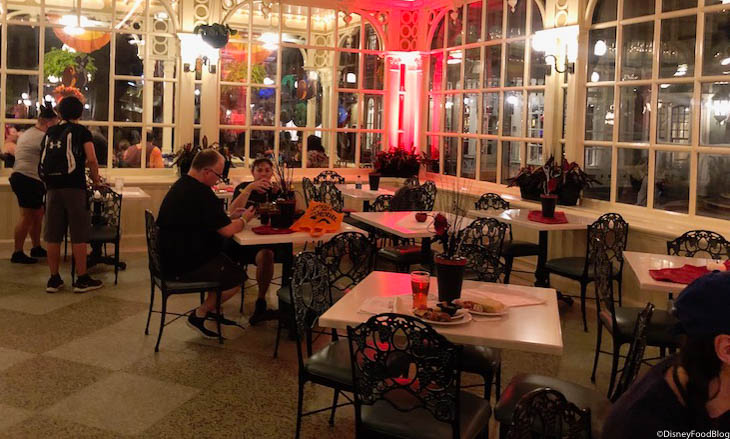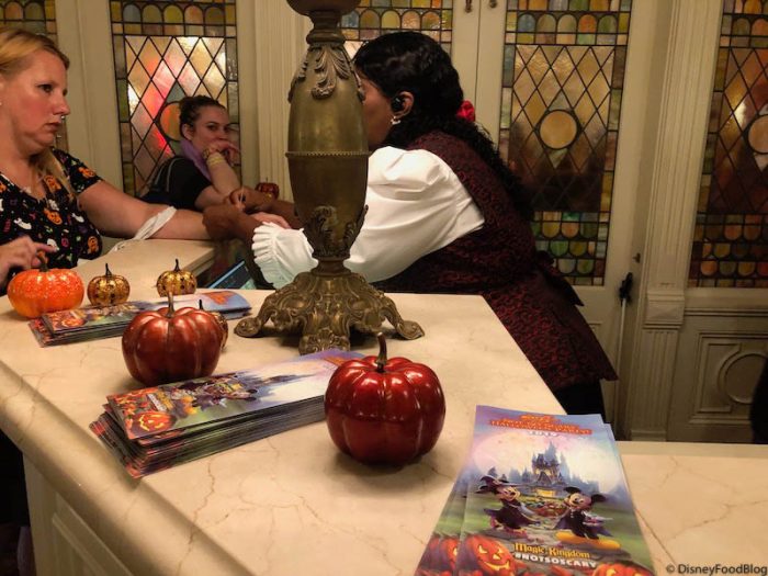 This event kicks off at Tony’s Town Square Restaurant each party night at 9:30 PM. And much like Tony’s Most Merriest Town Square Party — which you can read our review of here from last year’s Mickey’s Very Merry Christmas Party — this extra-ticket event allows guests to come and go at their leisure from 9:30 PM-12:30 AM on the designated party night, noshing and sipping when they’re not watching the Boo to You Parade from a VIP vantage point.