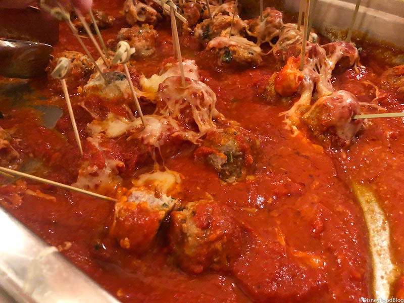 This broad buffet table offers antipasti, crudite, breads, meats and cheeses, and other appetizer options. It’s a good start, but don’t fill up too much here — there are more substantial hot food options that you need to try.