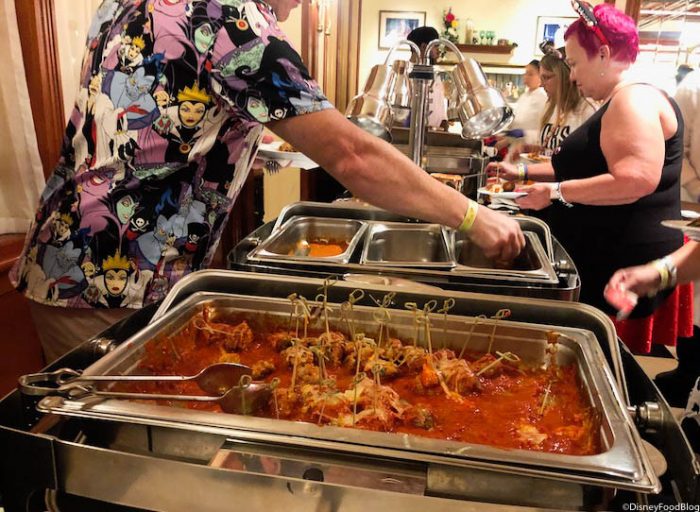 It doesn’t reeeeeally make sense on the surface, so let’s dig into what the rationale might be for actually doing it. If the food had been amazing, we might recommend it a little more heartily; but while the food was fresh and respectable, it wasn’t something that merited paying this much money to NOT be at the Halloween party we already paid for. Now, Cruella herself is pretty cool. But not 100 extra dollars cool. Plus her line was super long most of the night. The VIP parade viewing? Very nice. But, let’s be honest — if you’re going to wait out the crowds until the second parade at MNSSHP, it’s pretty easy to get a good view (most people — especially families with small children — watch the first parade, the fireworks, and then leave…which means great vantage points for the second parade are pretty easy to find). The extra 30 minutes to nosh and drink after the party is officially over? Also a benefit. But last call for alcohol was at 12:15, and if you’ve waited until the very end of the night to eat the buffet food…well…you know you’re getting the leftovers since cast members aren’t bringing out fresh pans of eats at midnight when most of the guests have already gone.