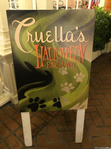 Disclosure: In nearly all circumstances, Disney Food Blog writers and photographers pay full price for their own travel, hotel, food, beverage, and event tickets. We do this because it’s important to us as journalists to ensure not only that we give you unbiased opinions, but also that you can trust us to do so since we’re paying our own way. On rare occasions, when we are invited by a company to attend a preview as media, and when we choose to accept that invitation, we will always make you, our readers, aware of that situation. Today, we were invited by Disney World to attend their media preview of Cruella’s Halloween Hide-a-Way. Note that when we attend events as media we are 1) Not required to review that event/food on any of our channels, and 2) Not required to review that event/food favorably. You can always count on DFB to give you a 100% unbiased and honest review of any event that we attend, food that we eat, or beverage that we drink. You can see more in our Disclosure Policy. Thank you for reading. — AJ